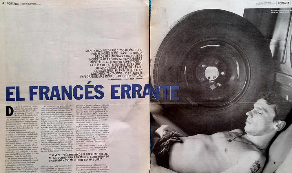 MANU CHAO RECORRIÓ 1.700 KILÓMETROS POR EL NORESTE DE BRASIL EN BUSCA DE LOS REPENTISTAS. CHAO QUIERE INCORPORAR A ESTOS IMPROVISADORES MUSICALES A SU NUEVO ESPECTACULO, LA FERIA DE LAS MENTIRAS. EL EX LIDER DE MANO NEGRA PRESENTARA ALLI CLANDESTINO, SU PRIMER DISCO EN SOLITARIO. TENTACIONES VIAJO CON EL EXPLORADOR MAS INQUIETO DEL ROCK ACTUAL.